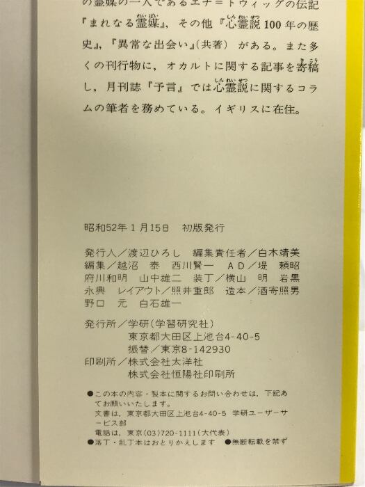 心霊の世界 学研 ロイステマン:著 楠田順:訳 昭和52年