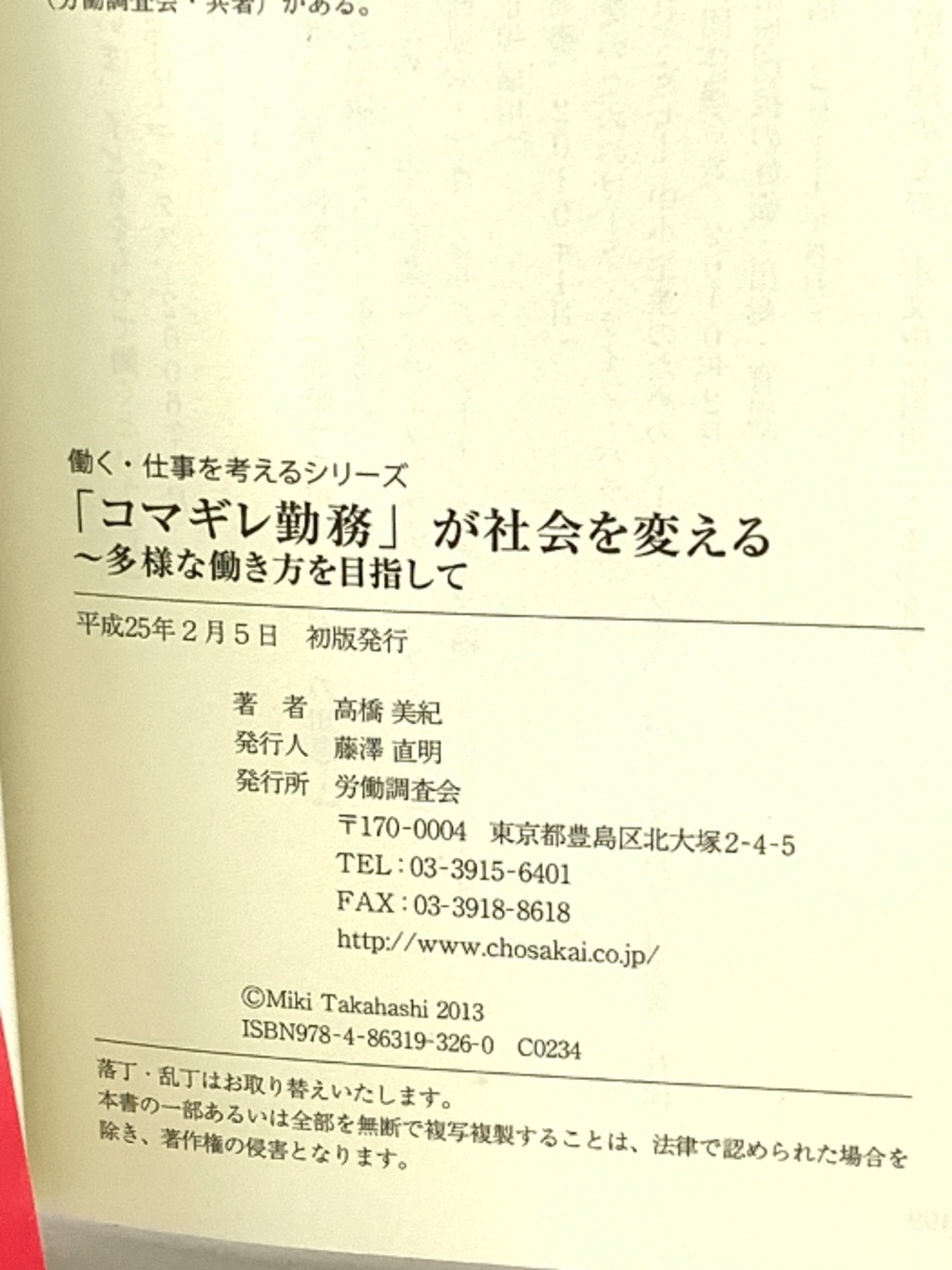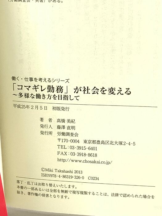 タイトル:「コマギレ勤務」が社会を変える―多様な働き方を目指して (働く・仕事を考えるシリーズ) 労働調査会 高橋美紀