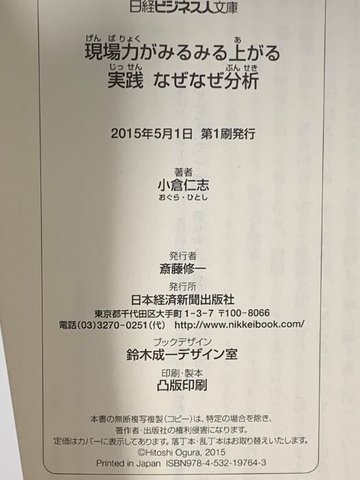 タイトル:現場力がみるみる上がる実践なぜなぜ分析 日経BPマーケティング(日本経済新聞出版 小倉 仁志