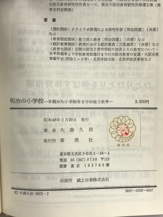 明治の小学校 学制から小学校令までの地方教育 泰流社 大森久治:著 昭和48年