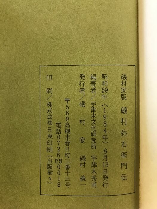 タイトル:磯村弥右衛門伝(磯村家版)昭和59年 発行:磯村義一