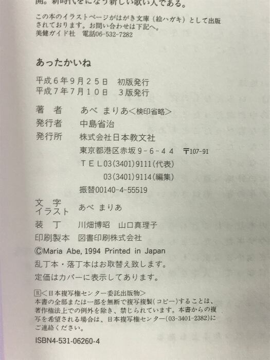タイトル:あったかいね 日本教文社 あべ まりあ