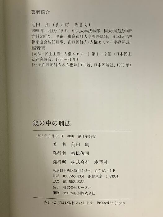 タイトル:鏡の中の刑法 水曜社 前田 朗