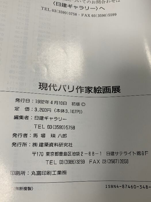 タイトル:図録 現代パリ作家絵画展 建築資料研究社 1992
