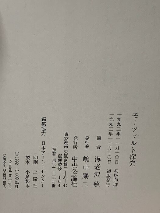 タイトル:モーツァルト探究 中央公論新社 海老澤 敏