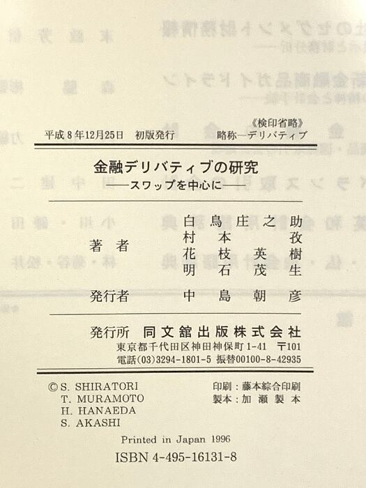 タイトル:金融デリバティブの研究: スワップを中心に 同文舘出版 白鳥 庄之助