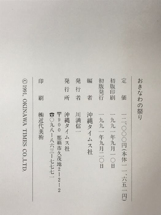 タイトル:おきなわの祭り 沖縄タイムス社編 1991年 発行:沖縄タイムス社