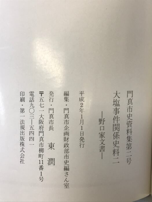 タイトル:大塩事件関係史料二 野口家文書 門真市史資料集二 平成2年(大阪府門真市)