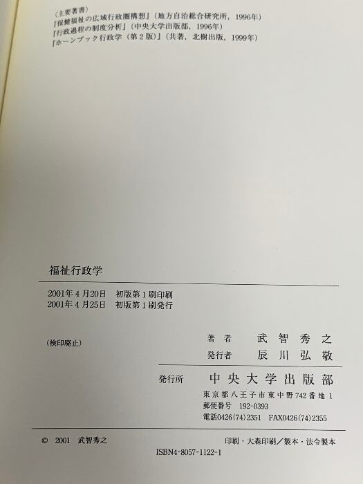 タイトル:福祉行政学 中央大学出版部 武智 秀之