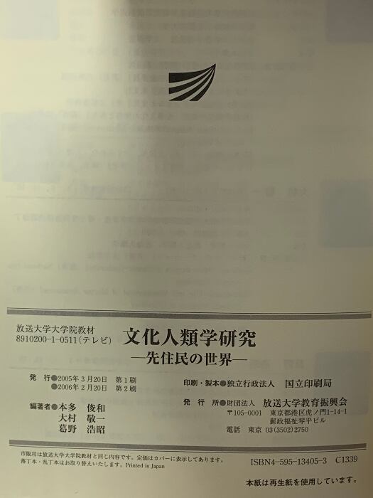タイトル:文化人類学研究-先住民の世界 放送大学教育振興会