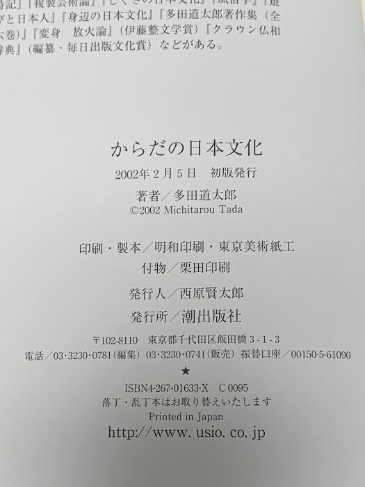 からだの日本文化 潮出版社 多田 道太郎