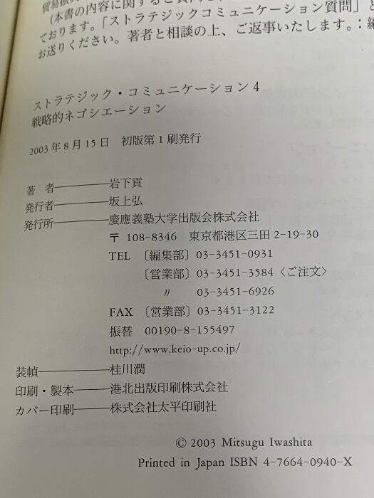 タイトル:戦略的ネゴシエーション (ストラテジック・コミュニケーションシリーズ) 慶應義塾大学出版会 岩下 貢