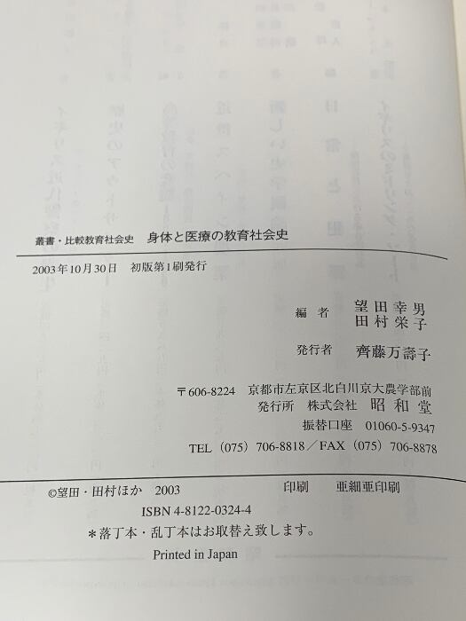 タイトル:身体と医療の教育社会史 (叢書・比較教育社会史)