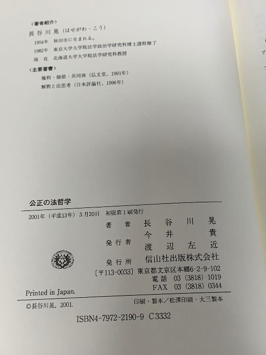 タイトル:公正の法哲学 信山社 長谷川 晃