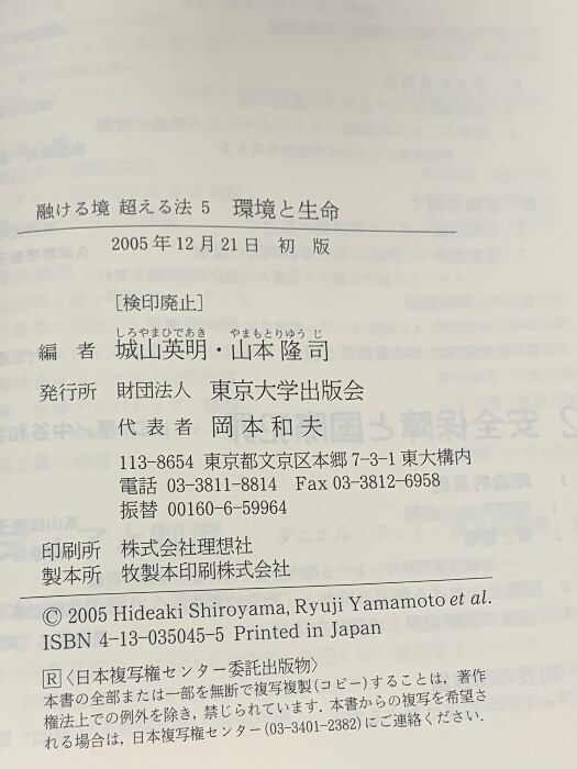 タイトル:環境と生命 (融ける境超える法 5) 東京大学出版会 城山 英明