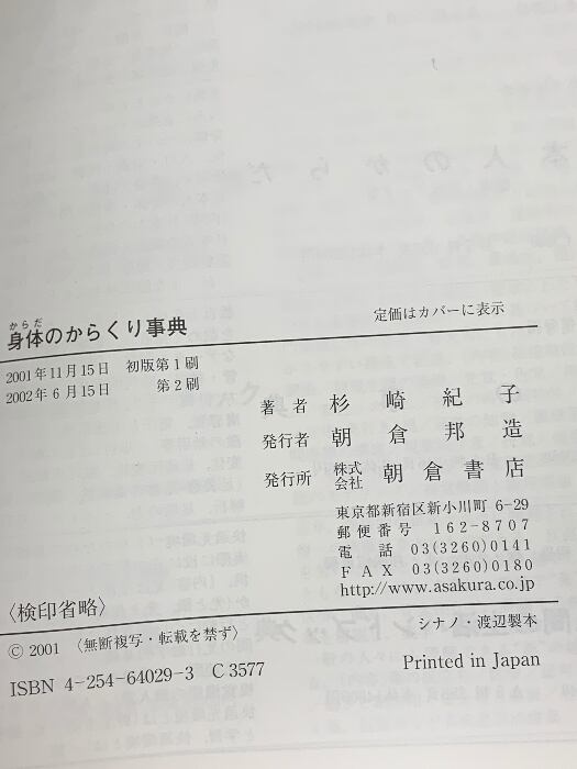 タイトル:身体のからくり事典 朝倉書店 杉崎 紀子