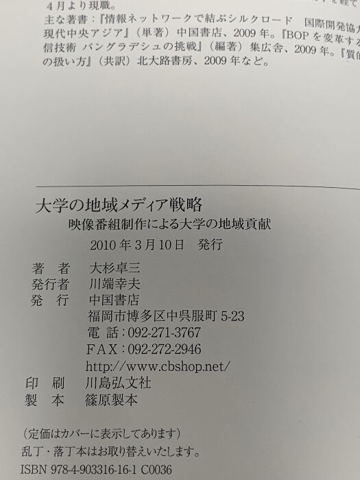 タイトル:大学の地域メディア戦略 映像番組制作による大学の地域貢献 中国書店 大杉卓三