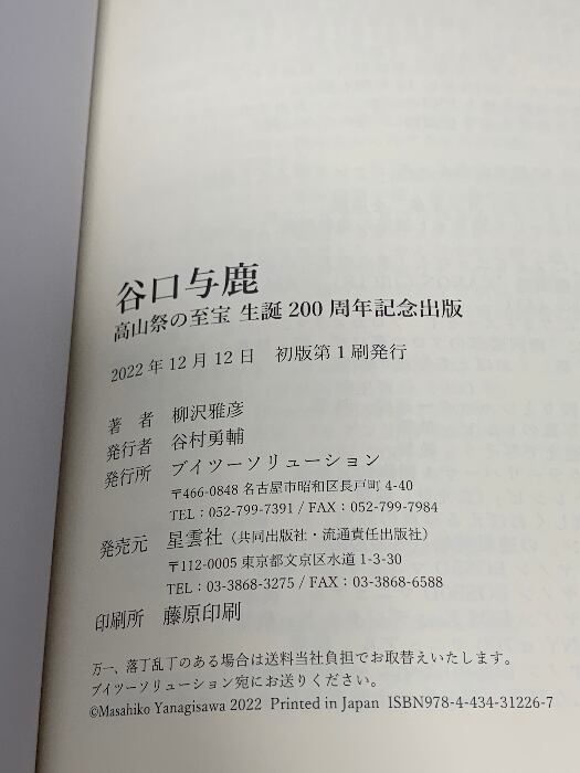 谷口与鹿 高山祭の至宝 生誕200周年記念出版 ブイツーソリューション 柳沢 雅彦