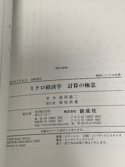 ミクロ経済学―計算の極意― 創成社 森田 龍二
