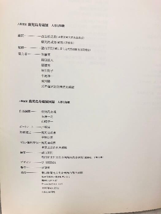 図録 人間国宝 鹿児島寿蔵展 人形と短歌 1997 朝日新聞社
