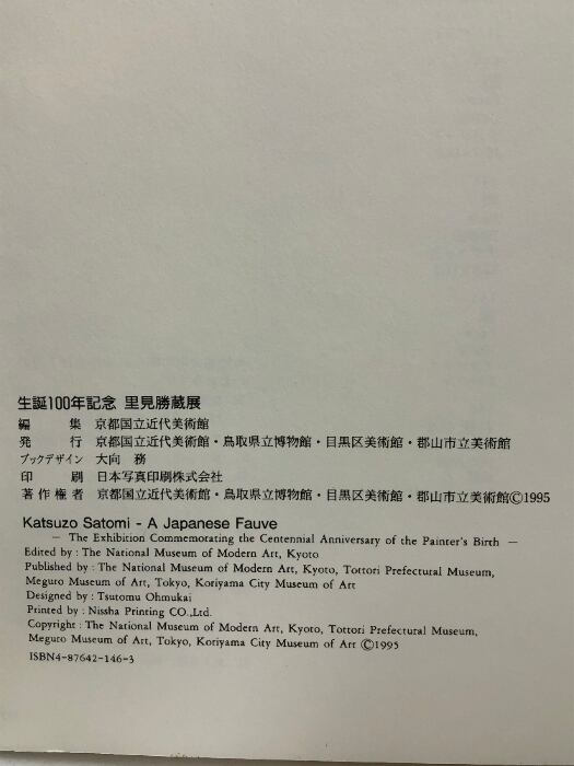 タイトル:図録 里美勝藏展 生誕100年記念 1995 1996 京都国立近江美術館