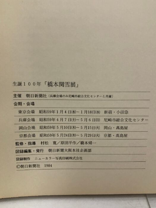 図録 橋本関雪展 生誕100年記念 1984 朝日新聞社