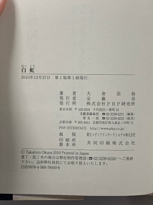 タイトル:白虹 PHP研究所 大倉 崇裕