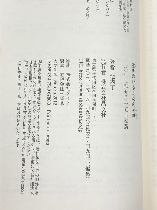 タイトル:生きのびるための科学 晶文社 池内 了