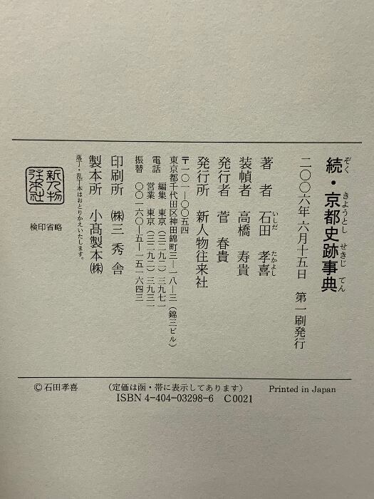 京都史跡事典 続 KADOKAWA(新人物往来社) 石田 孝喜