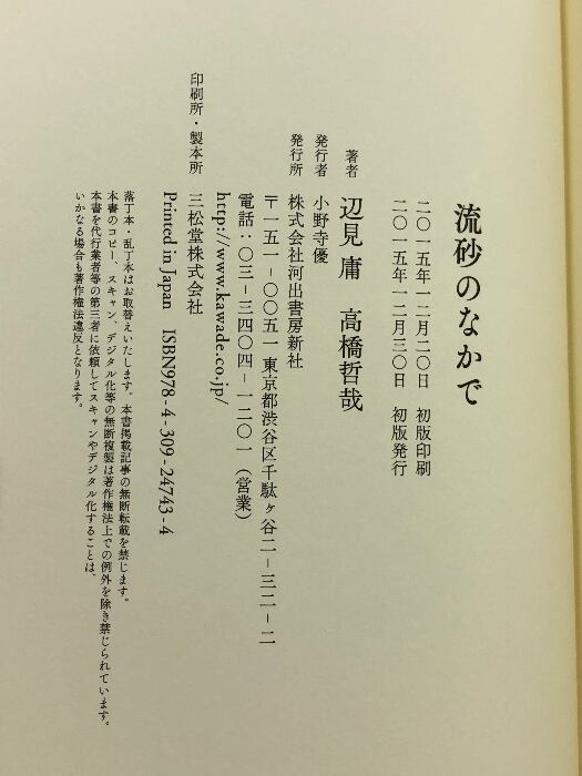 タイトル:流砂のなかで 河出書房新社 辺見 庸