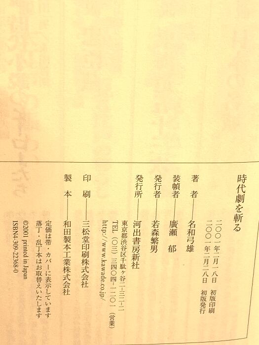 タイトル:時代劇を斬る 河出書房新社 名和 弓雄
