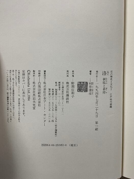 タイトル:京の歴史と文化 (5)(江戸時代前期) 洛―朝廷と幕府 講談社 村井 康彦
