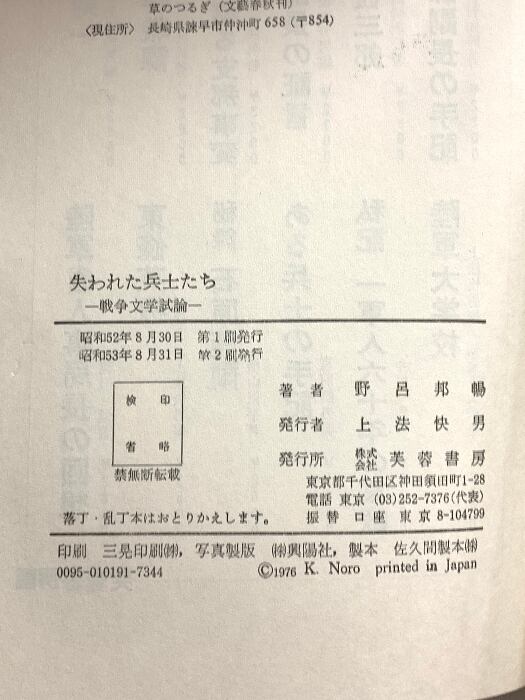 タイトル:失われた兵士たち―戦争文学試論 (1977年)