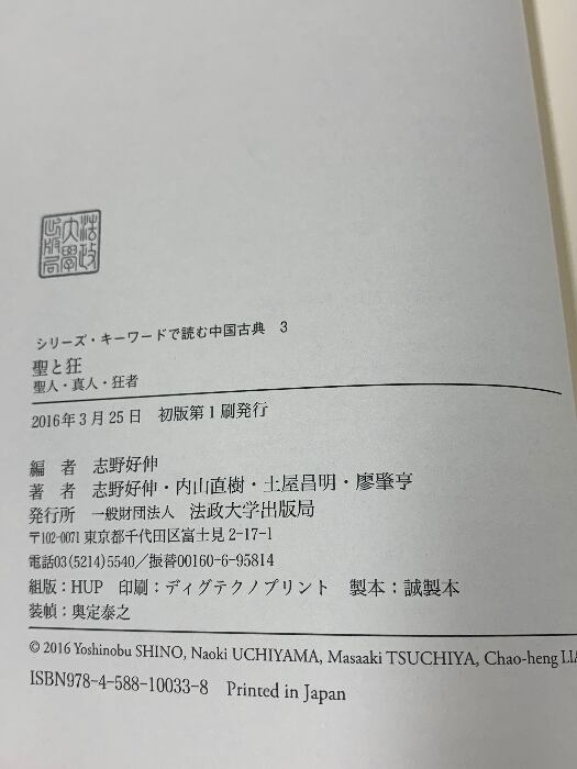 タイトル:聖と狂: 聖人・真人・狂者 (シリーズ・キーワードで読む中国古典 3) 法政大学出版局 内山 直樹