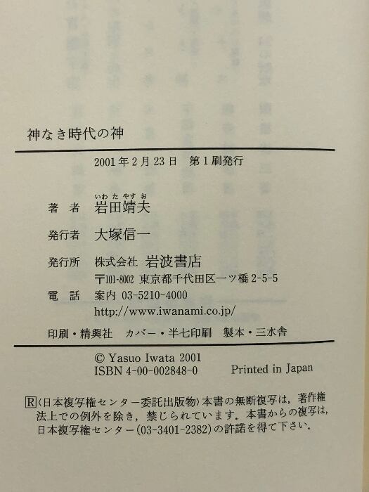 タイトル:神なき時代の神: キルケゴールとレヴィナス 岩波書店 岩田 靖夫