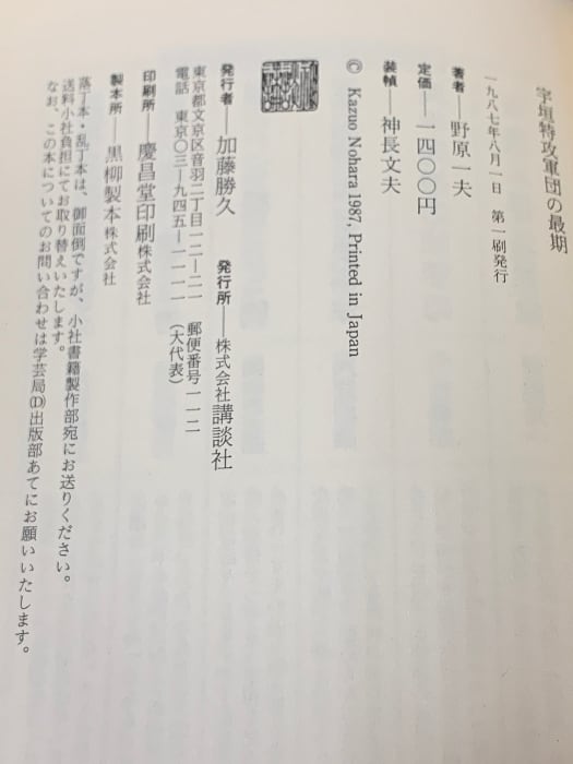 タイトル:宇垣特攻軍団の最期 講談社 野原 一夫