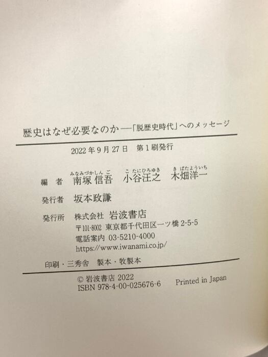 歴史はなぜ必要なのか 「脱歴史時代」へのメッセージ 岩波書店 南塚 信吾