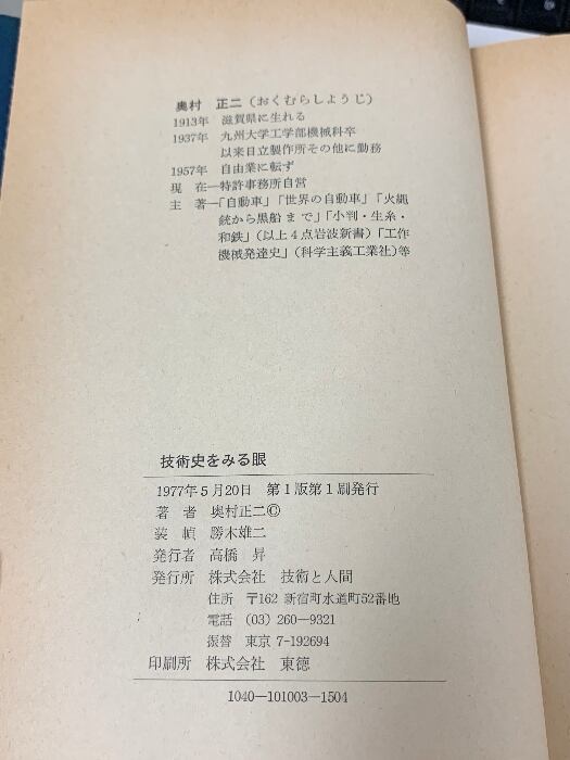 タイトル:技術史をみる眼―自動車から京友禅へ 技術と人間 奥村正二