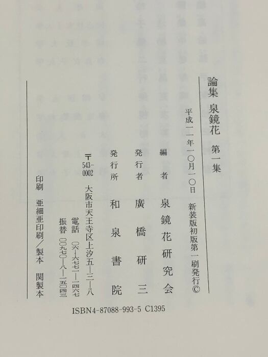 論集泉鏡花 (第1集) 和泉書院 泉鏡花研究会