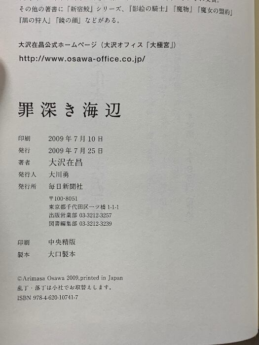 タイトル:罪深き海辺 毎日新聞社 大沢 在昌