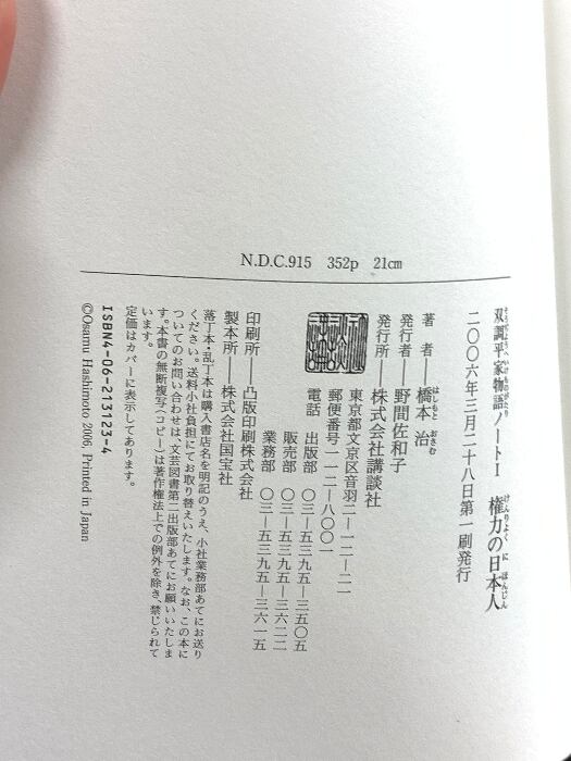 タイトル:権力の日本人 双調平家物語 I 講談社 橋本 治