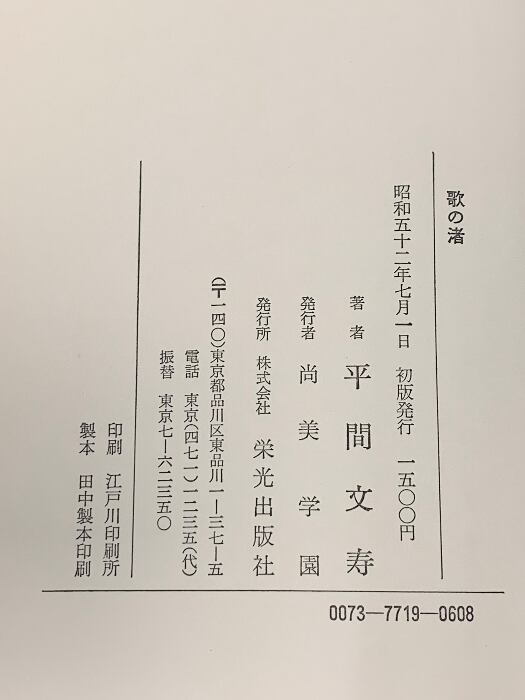 初版 歌の渚 栄光出版社 尚美学園 平間 文寿
