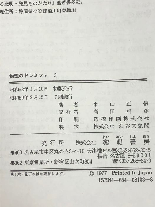 タイトル:物理のドレミファ (第3 波・音・光) 黎明書房 米山 正信