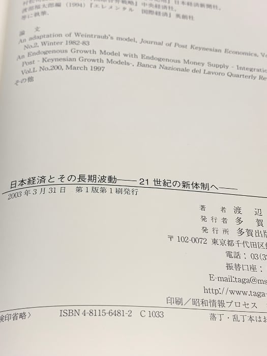 タイトル:日本経済とその長期波動: 21世紀の新体制へ 多賀出版 渡辺 健一