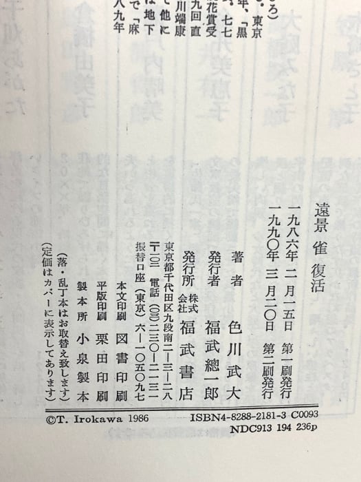 タイトル:遠景 雀 復活 ベネッセコーポレーション 色川 武大