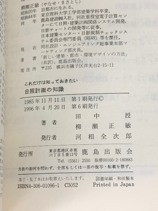 タイトル:これだけは知っておきたい日照計画の知識 鹿島出版会 田中 授