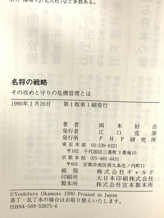 タイトル:名将の戦略: その攻めと守りの危機管理とは PHP研究所 岡本 好古