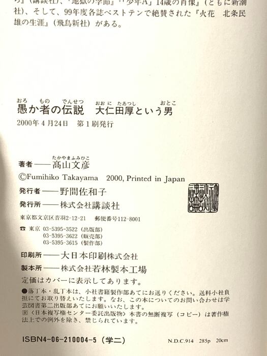 タイトル:愚か者の伝説: 大仁田厚という男 講談社 高山 文彦