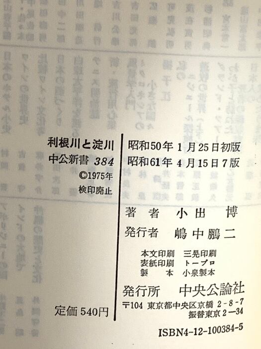 タイトル:利根川と淀川: 東日本・西日本の歴史的展開 (中公新書 384) 中央公論新社 小出 博