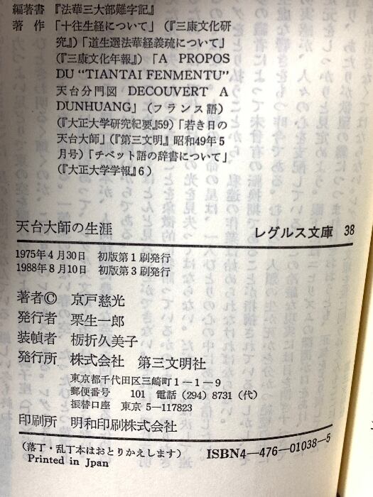 タイトル:天台大師の生涯 (1975年) レグルス文庫〈38〉 第三文明社 京戸 慈光